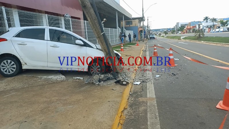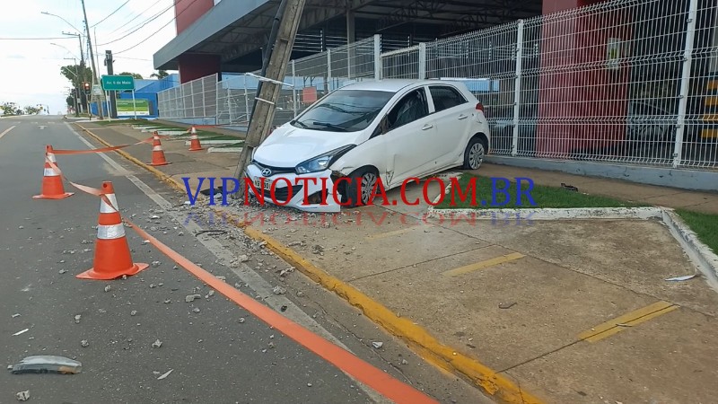 De acordo com informações colhidas no local do acidente, é de que o condutor de um veículo modelo Hyundai HB20 transitava pela Avenida Transcontinental sentido Centro, e ao chegar próximo do semáforo um veículo que estava à sua frente, teria freado bruscamente fazendo com que o condutor do HB20 para não bater jogou o veículo para o lado direito acertando o poste de iluminação pública.