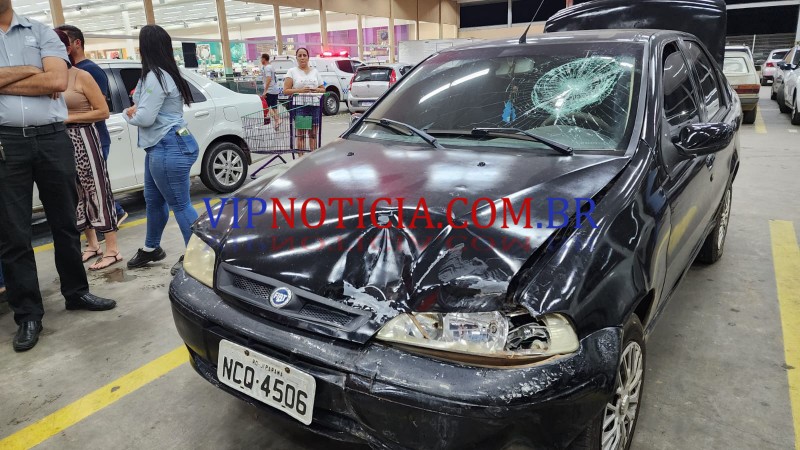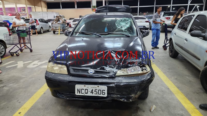 Seu veículo, com danos visíveis no para-brisa e pára-choque, foi encontrado no estacionamento do supermercado. Devido à omissão de socorro, o condutor recebeu voz