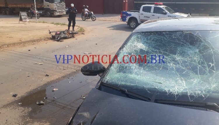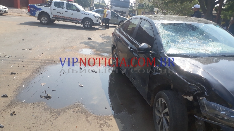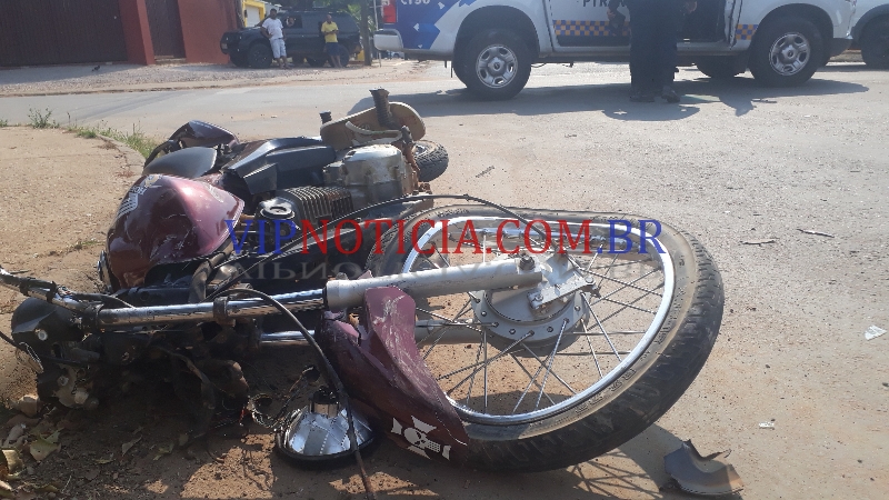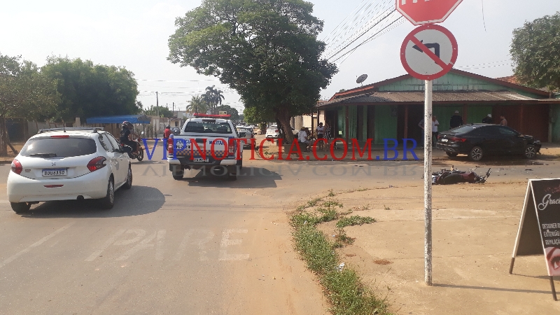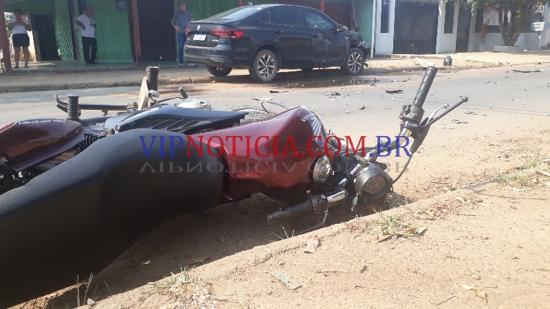 um veículo Virtus que trafegava pela rua São Luíz, sentido T-20; e ao chegar no cruzamento da T-14 uma motocicleta Honda Fan ocupada por dois jovens avançou a preferencial da via sentido Av. Brasil, vindo a colidir com o carro.