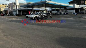 De acordo com informações apuradas no local, a motocicleta seguia pela Avenida Maringá no sentido à T-5 quando o condutor do veículo tentou atravessar a rotatória existente no cruzamento. Durante a manobra, houve a colisão entre os dois veículos.