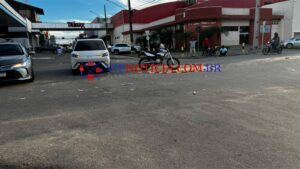 Um acidente de trânsito envolvendo uma motocicleta e um carro foi registrado na tarde desta terça-feira na Avenida Maringá, esquina com a Rua T-4, em Ji-Paraná (RO).