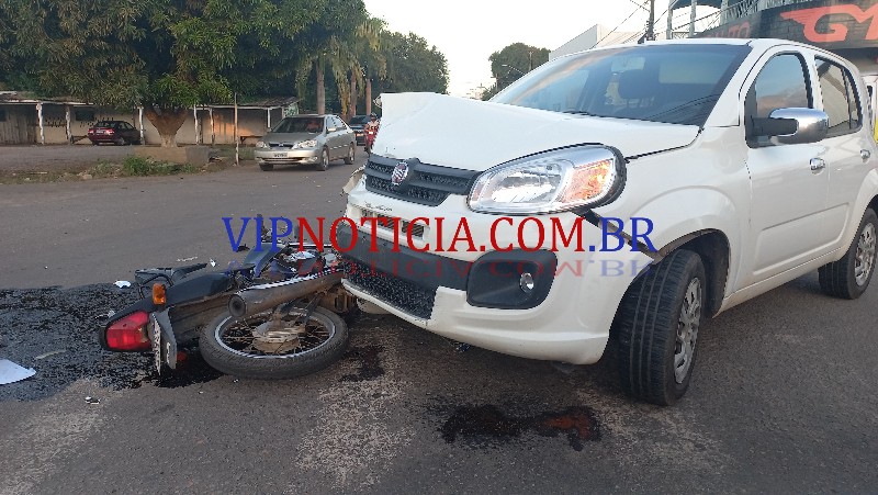 O acidente envolvendo carro e motocicleta aconteceu na tarde desta sexta-feira (09) na Av. Maringá com T-12, segundo distrito de Ji-Paraná.