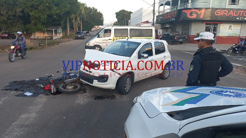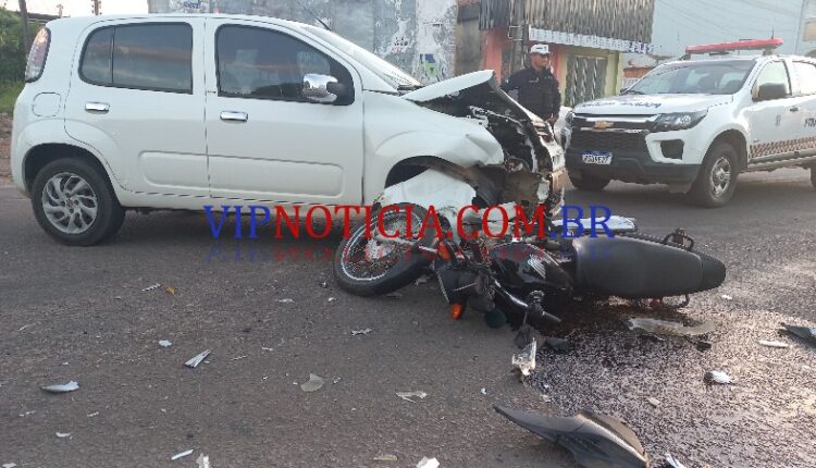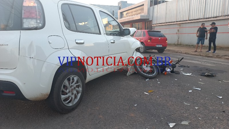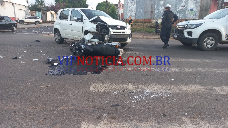 O acidente envolvendo carro e motocicleta aconteceu na tarde desta sexta-feira (09) na Av. Maringá com T-12, segundo distrito de Ji-Paraná.