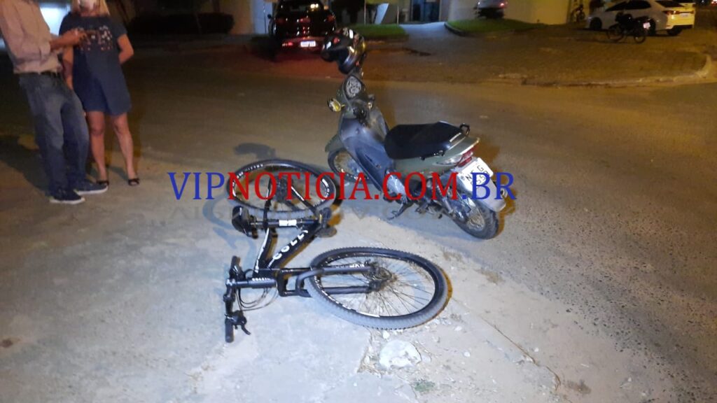 O Após uma ligação na central de operações da Polícia Militar, informando que  na Av Aracaju  tinha ocorrido um   acidente de trânsito.   Uma  viatura  da  rádio patrulha da Polícia Militar foi até o local e pode constatar a veracidade dos fatos,  Testemunhas   que  estava  no  local, disse que a  condutora  da  motocicleta  seguia  na  Av Aracaju  sentido  t 20   Quando  uma  ciclista que estava  seguindo no mesmo sentido  fez  uma conversão para entrar  a  esquerda   momento em  que a condutora  da motoneta  Biz  veio  a  colidir  na ciclista  provocando  o  acidente.  Uma  UR do corpo de bombeiros  foi acionado para prestar os primeiros socorros  as vítimas e conduziu  as as duas  com lesões  leves  ate hospital Municipal