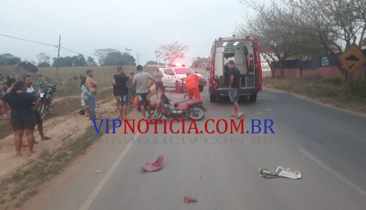 O acidente envolvendo um veículo modelo Fiat Strada e uma motoneta Honda Biz aconteceu no final tarde desse domingo, 20/08, na estrada do aeroporto.