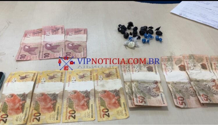 Enquanto os agentes atendiam a ocorrência, uma mulher que seria companheira de Leandro e estava nas imediações foi abordada e revistada por uma policial feminina. Em uma das buscas, foram encontradas drogas escondidas entre os seios da suspeita — pedras de crack, porções de cocaína e mais de R$ 500 em dinheiro. A droga estaria no interior do VW Gol e a mulher teria retornado ao local para recuperar o entorpecente.