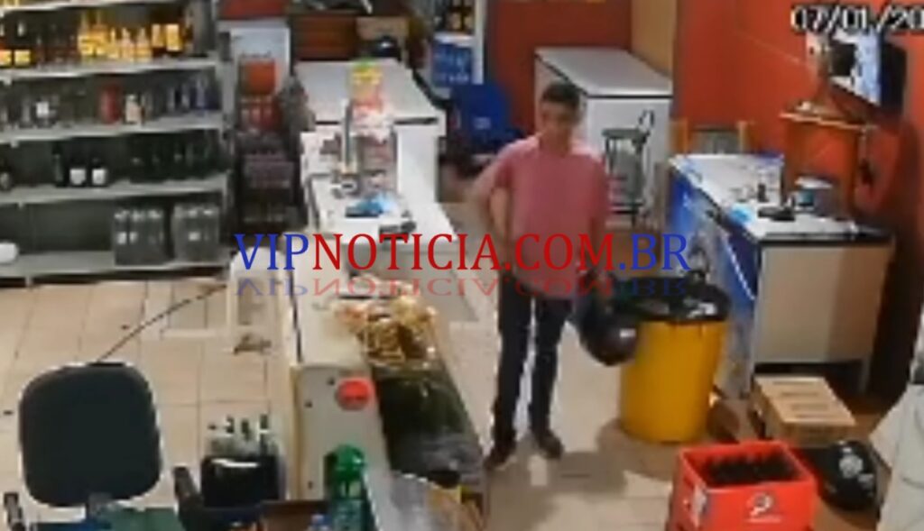 O rapaz que é defiente de uma perna adentrou a uma distribuidora na rua 31 de março e sorrateiramente foi até a parte interna do balcão que naquele momento estava sem ninguém e furtou um smartphone.
