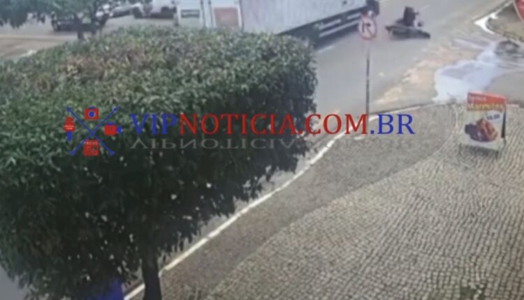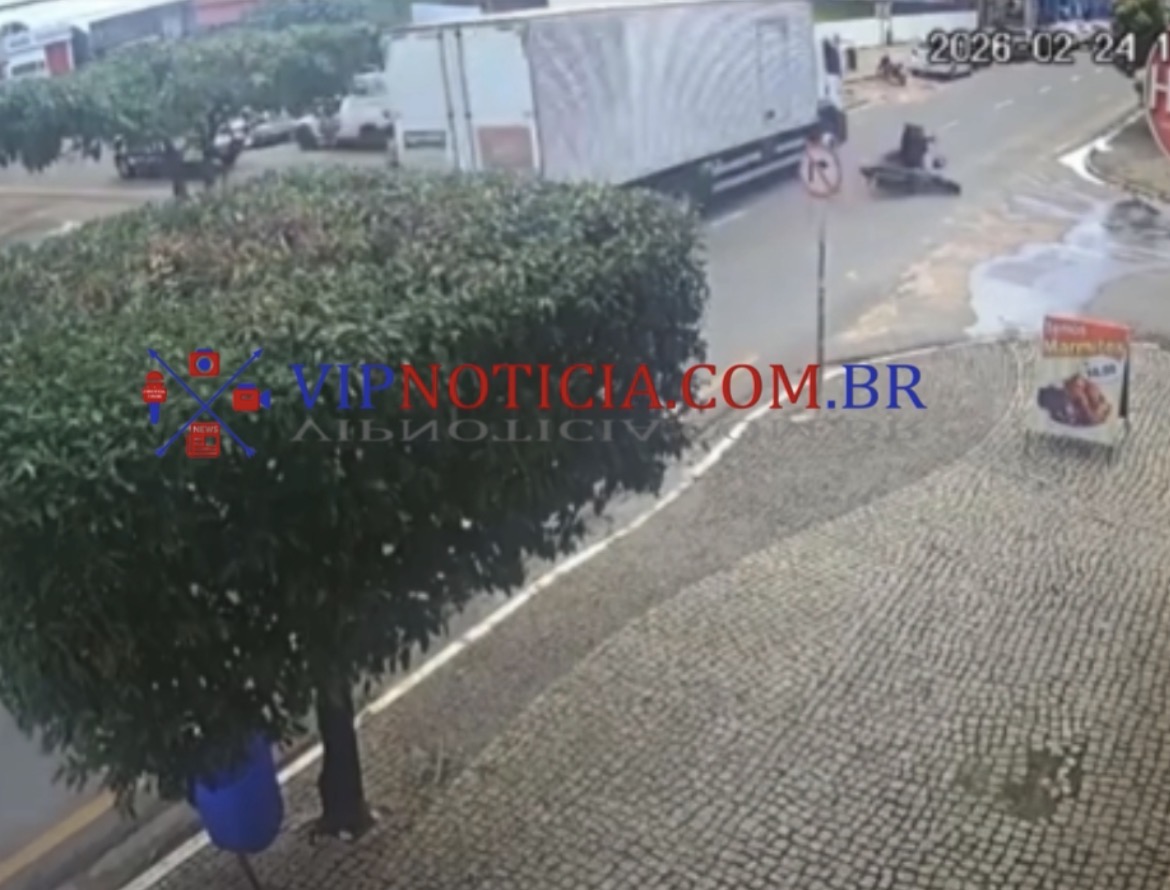 Câmera flagra momento exato de acidente entre caminhão e motocicleta em Ji-Paraná