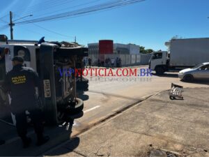 Com o impacto, o caminhão que estava na via preferencial tombou sobre a pista. Apesar dos danos materiais e da gravidade do acidente, felizmente não houve feridos.