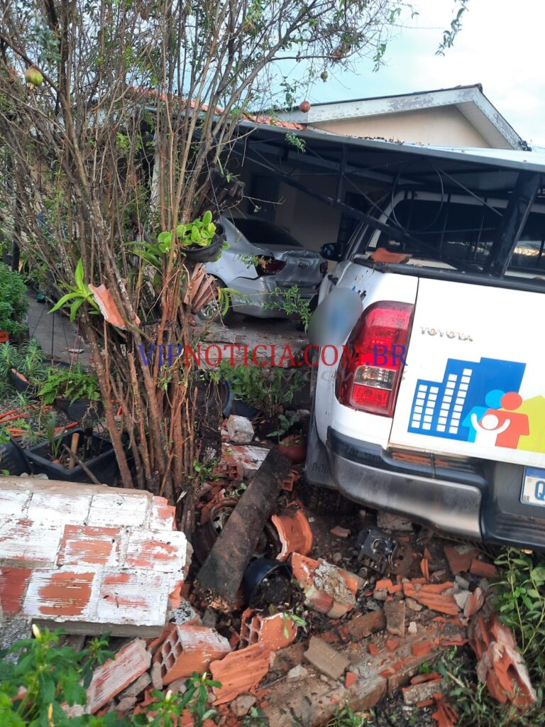 Na fuga uma das caminhonetes veio a colidir com o muro de uma residência vindo a ser abandonada pelos bandidos.