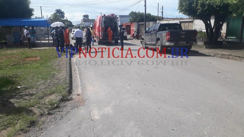 Segundo informações a condutora de uma motoneta Honda Pop seguia pela rua São luiz que é a via preferencial, quando no cruzamento com a T-14 uma caminhonete modelo S-10 que saia a rua Teresina sentido a Av Brasil avançou a preferencial e acabou colidindo na moto, com a pancada a moça que estava pilotando veio ao solo.