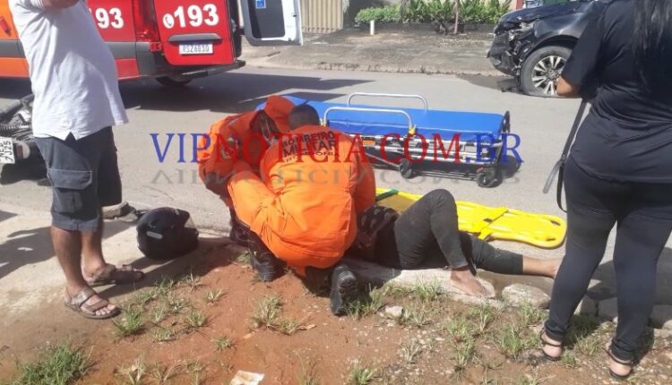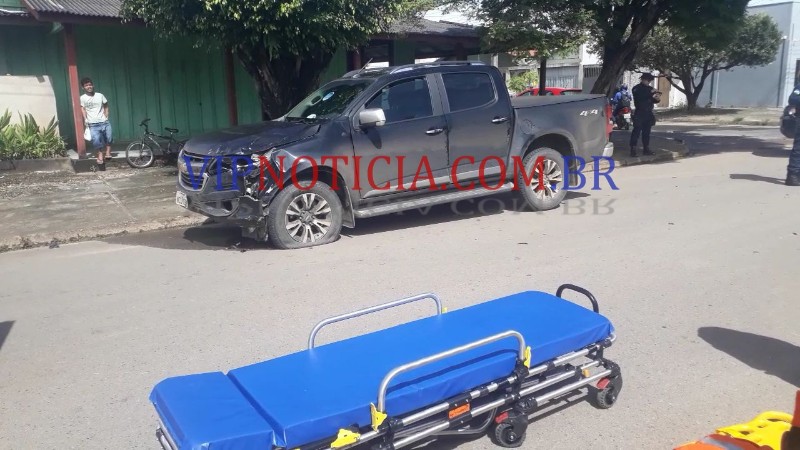 Segundo informações a condutora de uma motoneta Honda Pop seguia pela rua São luiz que é a via preferencial, quando no cruzamento com a T-14 uma caminhonete modelo S-10 que saia a rua Teresina sentido a Av Brasil avançou a preferencial e acabou colidindo na moto, com a pancada a moça que estava pilotando veio ao solo.