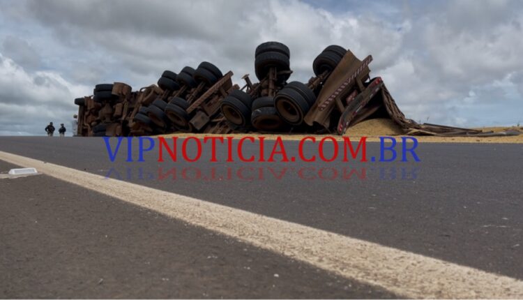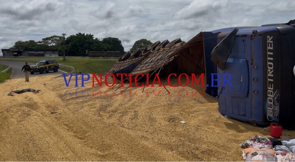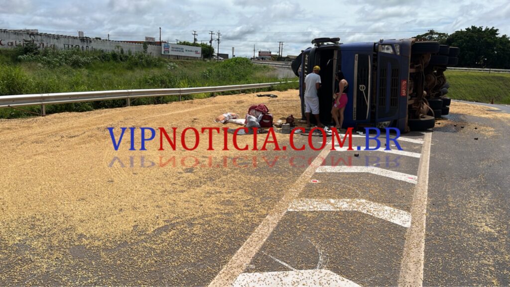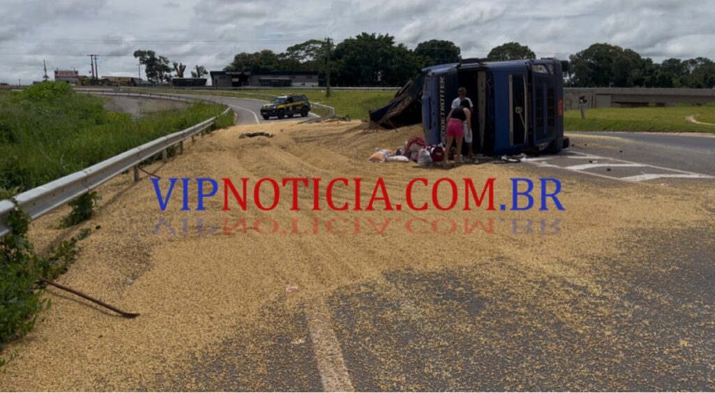 Na manhã desta terça-feira (18), um acidente ocorreu no Anel Viário de Ji-Paraná, envolvendo uma carreta carregada de soja. De acordo com o condutor do veículo, o estirante do último cavalinho se soltou, provocando o tombamento da carreta.