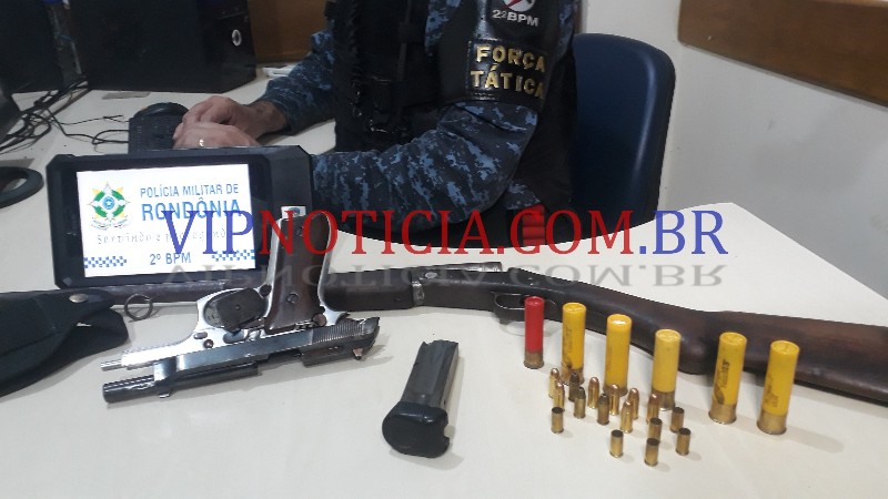 Uma ação em conjunto entre a Polícia Militar e a PRF, na noite desta terça-feira, dia 01, resultou na apreensão de duas armas de fogo, em Ji-Paraná. Segundo a Polícia, uma Guarnição da Força Tática, também conhecida como a “Guarnição do RAIO”, e uma Guarnição da PRF, estavam fazendo barreira em um ponto estratégico do desvio do KM-04, quando receberam uma informação dando conta que uma pessoa havia escondido uma motocicleta roubada em uma chácara.