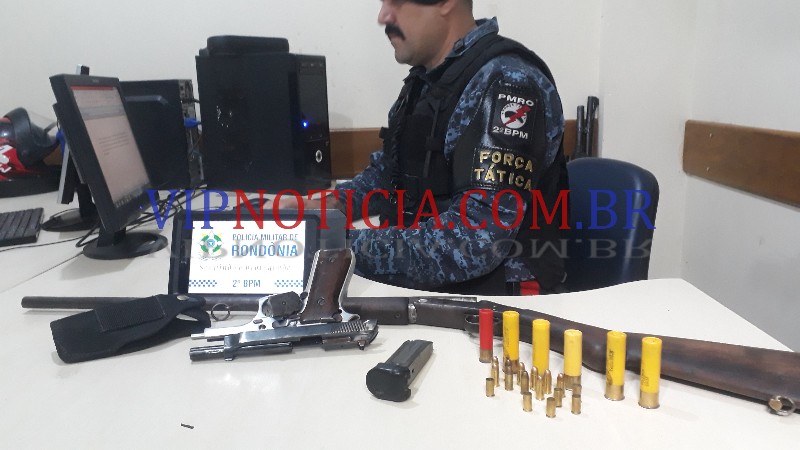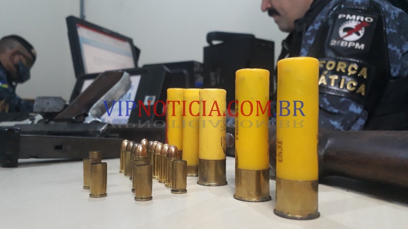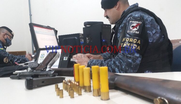 Uma ação em conjunto entre a Polícia Militar e a PRF, na noite desta terça-feira, dia 01, resultou na apreensão de duas armas de fogo, em Ji-Paraná. Segundo a Polícia, uma Guarnição da Força Tática, também conhecida como a “Guarnição do RAIO”, e uma Guarnição da PRF, estavam fazendo barreira em um ponto estratégico do desvio do KM-04, quando receberam uma informação dando conta que uma pessoa havia escondido uma motocicleta roubada em uma chácara.