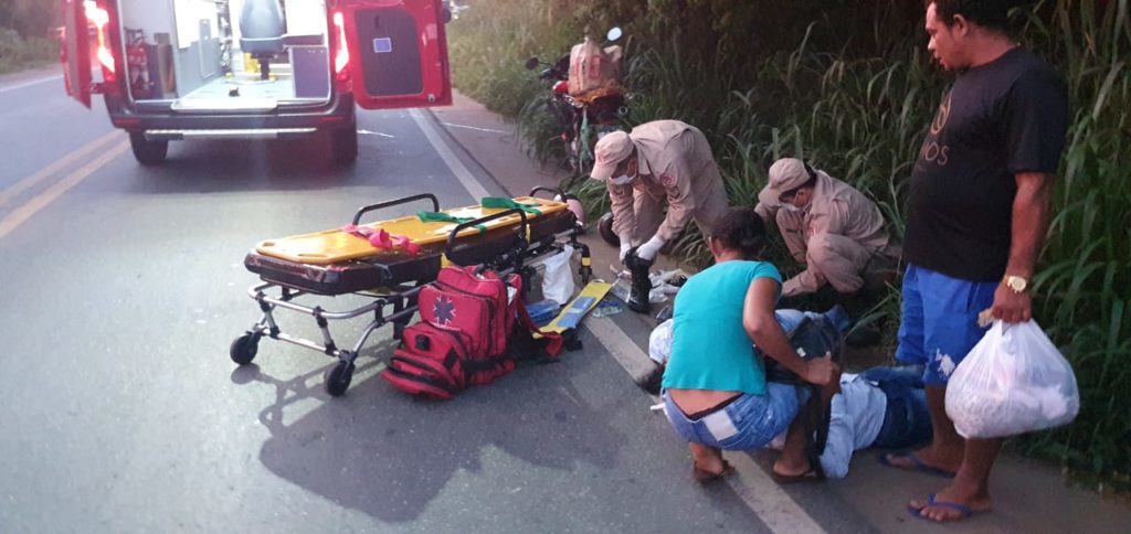O Corpo Bombeiros foi acionado e socorreu a garupa com fratura exposta na perna esquerda e o condutor não apresentou lesões graves, mas foi socorrido sentido muitas dores.