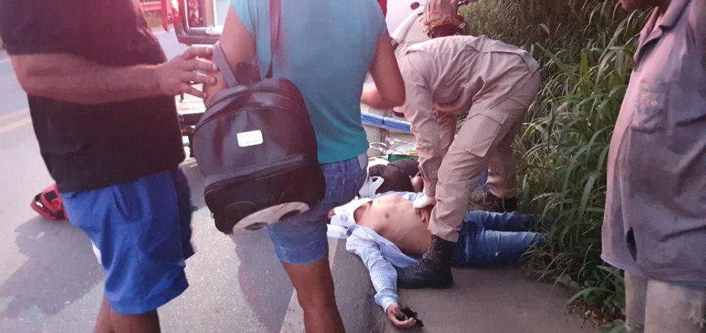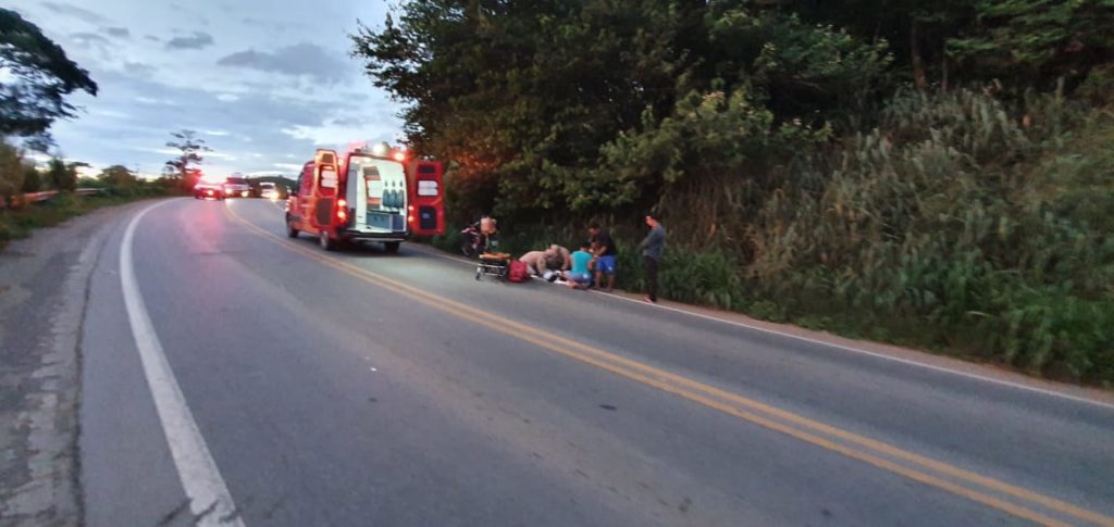 O Corpo Bombeiros foi acionado e socorreu a garupa com fratura exposta na perna esquerda e o condutor não apresentou lesões graves, mas foi socorrido sentido muitas dores.