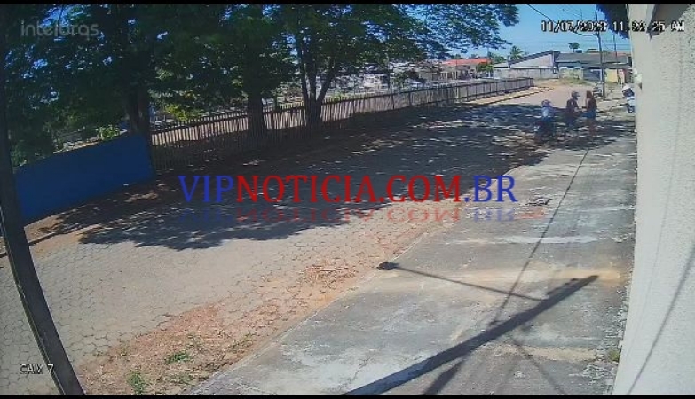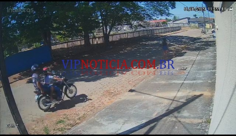 O vídeo mostra eles emparelhando a moto ao lado da vítima que transitava pela rua e calçada, fazendo a abordagem, o garupa desce e sob a mira de uma arma que estava na mão da namorada, rouba o celular da vítima, em seguida fogem.