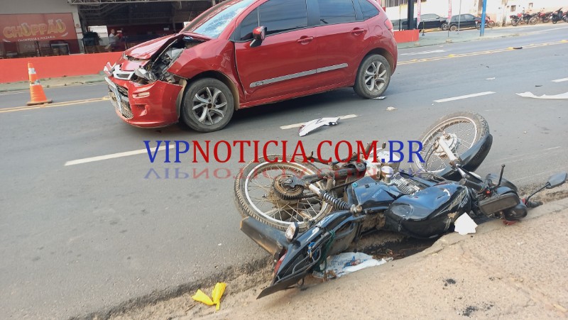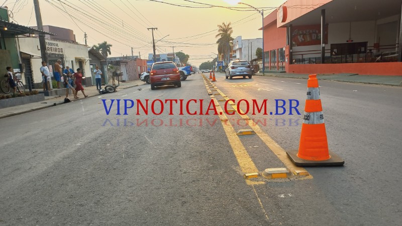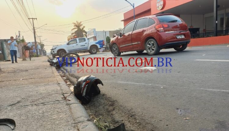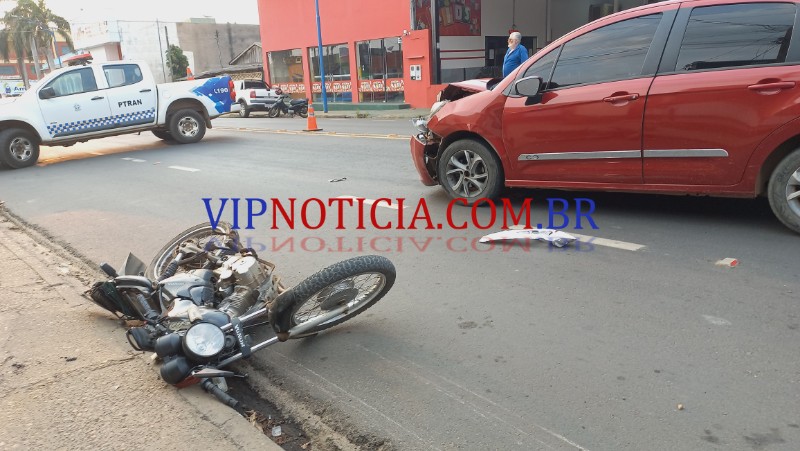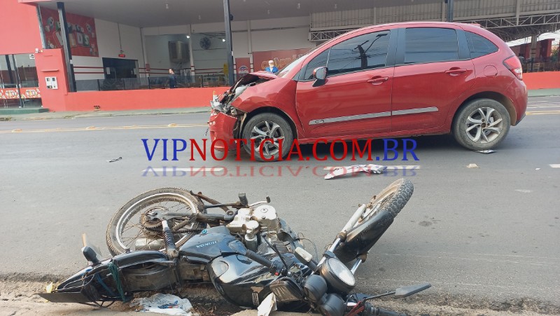 O acidente que envolveu um veículo modelo Citroën c 3 e uma motocicleta Honda aconteceu no final da tarde desta quinta-feira, dia 26 de setembro no cruzamento da AV. Maringá com T-15 no bairro nova Brasília, segundo distrito da cidade de Ji-Paraná. Segundo informações repassadas pela polícia militar o condutor que dirigia o veículo modelo Citroën c 3 trafegava pelo Maringá sentido a T-1, e ao se aproximar do cruzamento com T-15 foi surpreendido o pelo condutor da motocicleta modelo Honda de cor preta que avançou a preferencial ocasionando a colisão. Após a batida o motociclista foi lançado e caiu ao solo cerca de 10 m de distância do ponto da batida a motocicleta lixou no asfalto por cerca de 15 m. A equipe do SAMU foi acionada e esteve no local onde realizou os primeiros atendimentos ao jovem posteriormente ele foi encaminhado ao hospital municipal para receber atendimento médico especializado. O motociclista estava com algumas escoriações. A equipe da PTRAN esteve no local e isolou a área até a chegada da POLITEC, que realizou os trabalhos periciais. Após a conclusão dos trabalhos de perícia e de registro de ocorrência há via e os veículos foram liberados, vale ressaltar que o condutor do veículo modelo Citroën c 3 não possui habilitação e havia pegado o veículo emprestado.