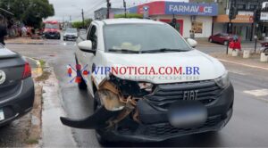 Um acidente de trânsito envolvendo um veículo utilitário Fiat Strada e uma motocicleta de cor vermelha foi registrado no início da tarde deste domingo, no cruzamento da rua Governador Jorge Teixeira (K5) com a T-23, no segundo distrito de Ji-Paraná.