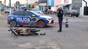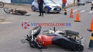 De acordo com informações preliminares, a batida aconteceu quando uma motocicleta que seguia pela Avenida Maringá, sentido à Rua T-15, acabou sendo atingida por outra moto, modelo Honda CG Fan, que teria invadido a via preferencial. O impacto derrubou os dois condutores – um homem e uma mulher – que ficaram caídos na pista até a chegada do socorro.