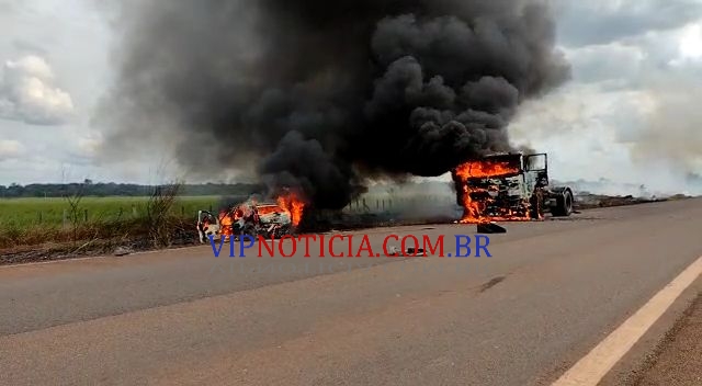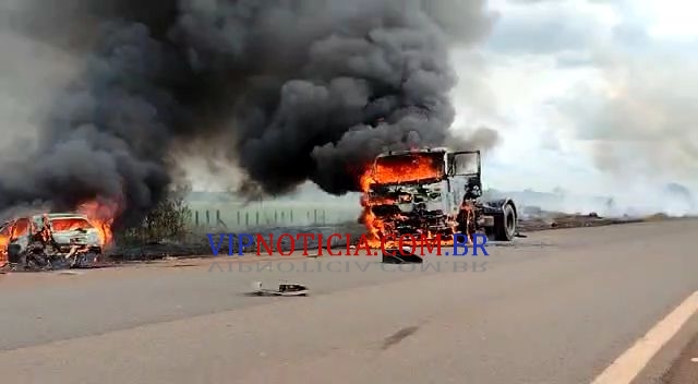 O acidente envolveu um veículo carreta (cavalinho), que colidiu na traseira de um automóvel que foi jogado para lateral da pista. Após o choque entre os veículos, ambos pegaram fogo.