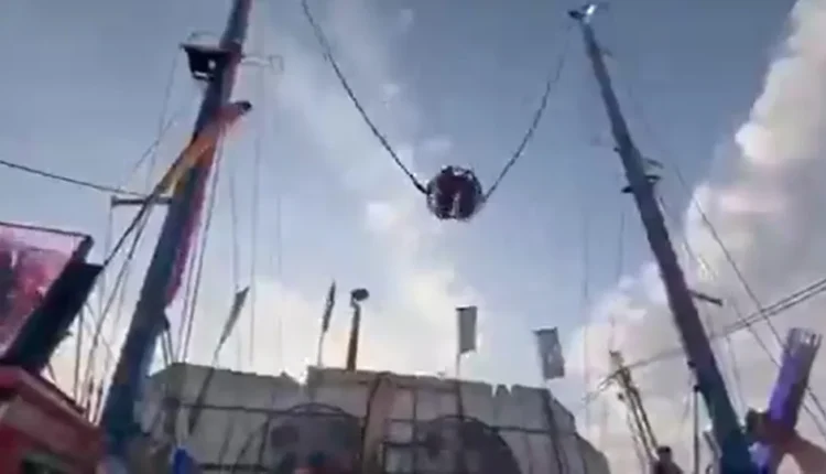 O incidente ocorreu por volta das 20h30 locais (19h30 em Portugal), na sexta-feira, quando uma das cordas da atração ‘Steel Max’ se rompeu, fazendo com que a estrutura em forma de bola caísse e ficasse presa por apenas outra corda — como é possível ver no vídeo acima.