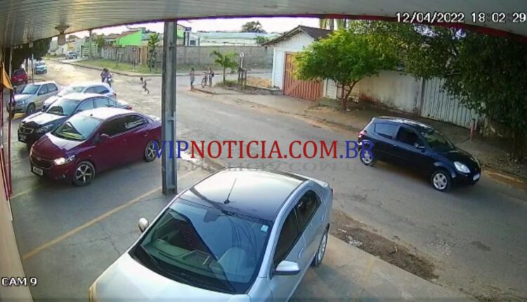 Como é possível ver nas imagens da câmera de segurança de um estabelecimento comercial. O motociclista seguia pela Aracaju com destino a T-20, quando no cruzamento com a T-17, a criança acabou atravessando a rua correndo.