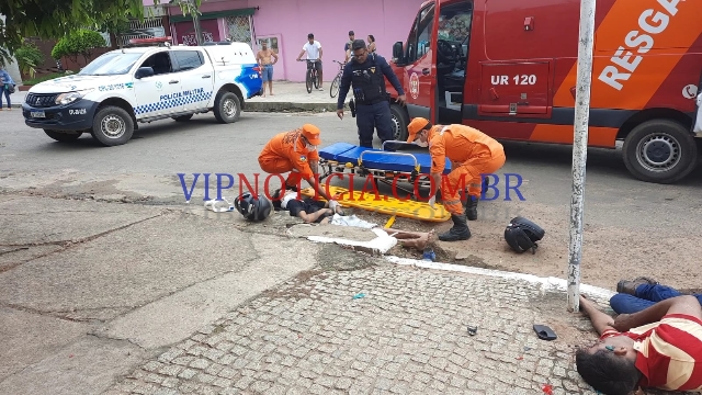 Duas unidades do corpo de bombeiros efetuaram o socorro dos motociclistas até o HM apara atendimento emergencial.