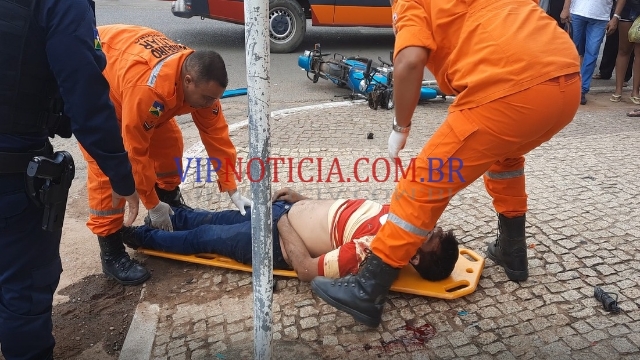 Ao se aproximar da Avenida Brasil colidiu brutalmente com outro motociclista que subia pela Av. Brasil sentido T-20.