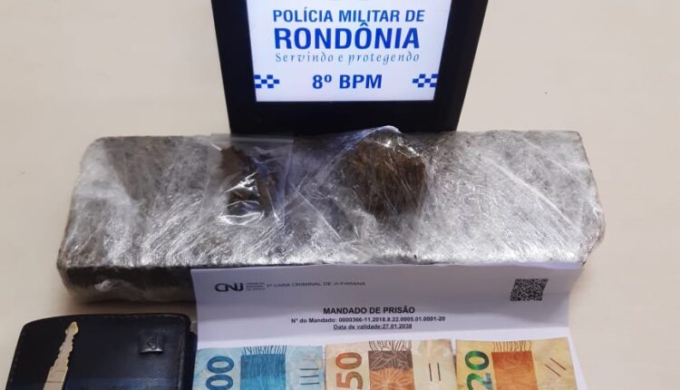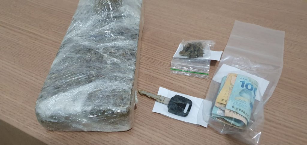 No final da tarde desta quarta-feira (07) um elemento foragido da justiça e com ele apreenderam um tijolo de maconha de aproximadamente 1kg.