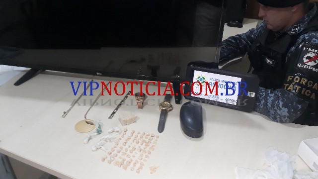 Dentro da casa, os policiais localizaram mais de 80 pedras de Crack e um outro pedaço inteiro, pesando aproximadamente 70 gramas. Também foi encontrado diversos objetos de procedência duvidosa, como televisão e joias.