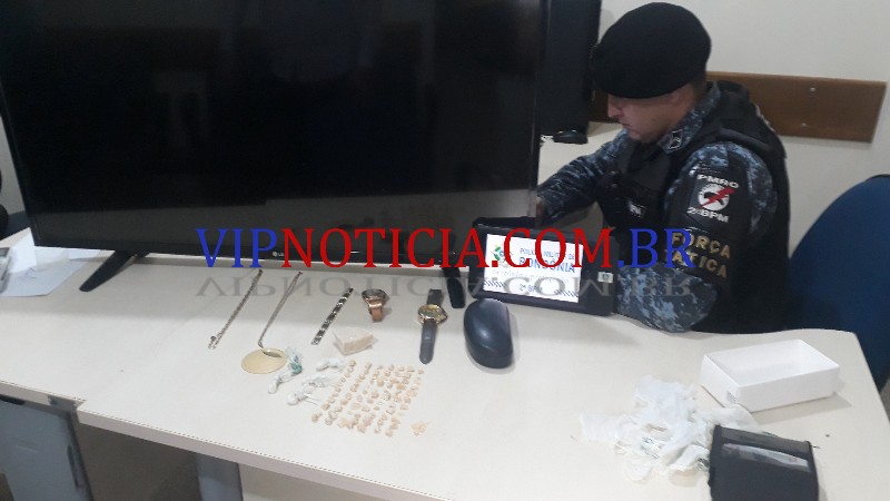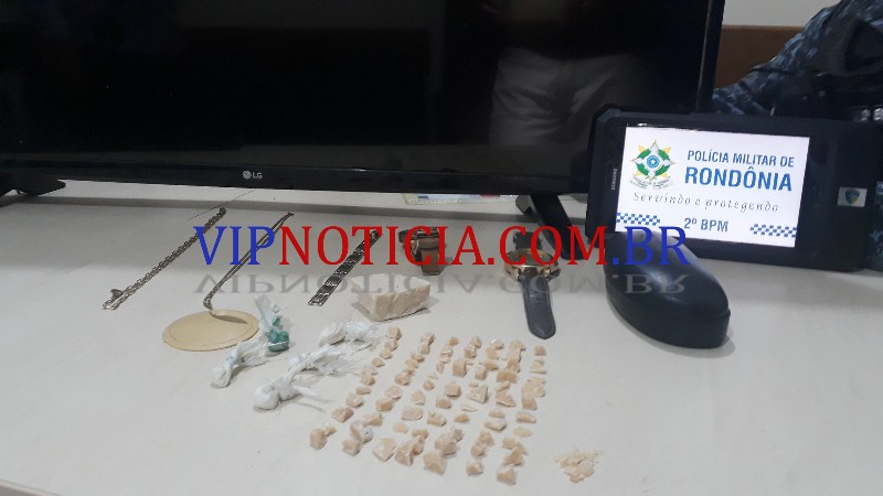 Dentro da casa, os policiais localizaram mais de 80 pedras de Crack e um outro pedaço inteiro, pesando aproximadamente 70 gramas. Também foi encontrado diversos objetos de procedência duvidosa, como televisão e joias.