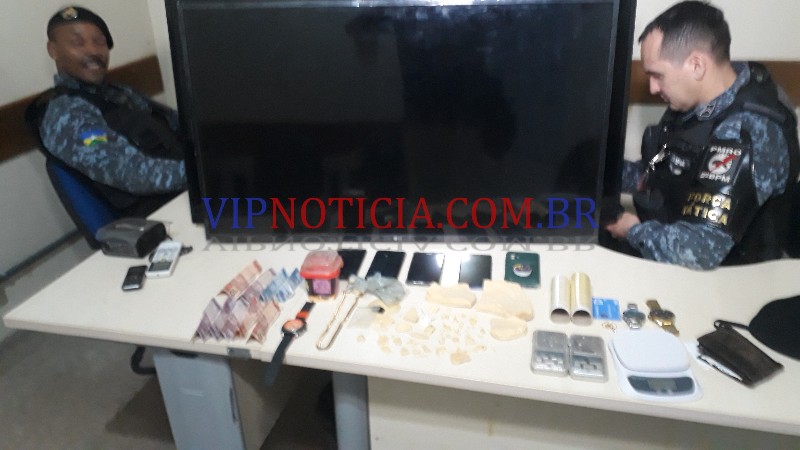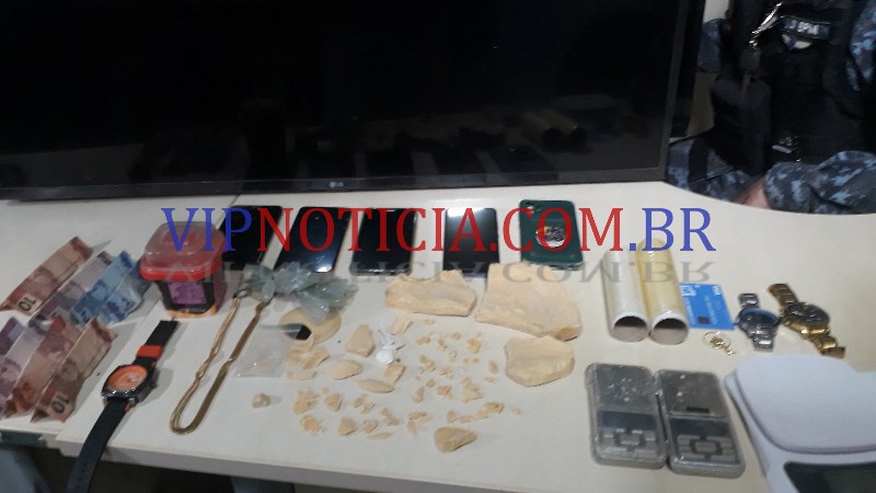 Dentro da casa os pms localizados vários usuários, apreenderam quase um quilo de crack sendo que a droga era fracionada em forma de parangas como pedra de crack. Também foram apreendidos dois televisores, balanças digitais e uma porção de maconha.