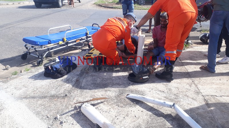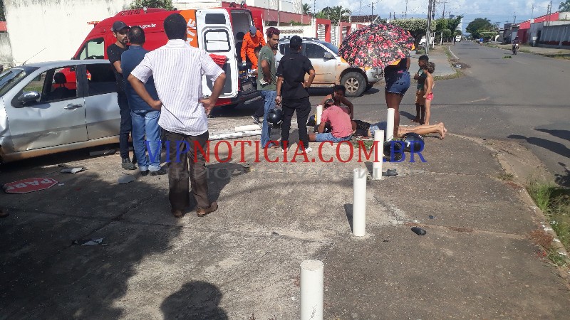 O carro teve a frente parcialmente destruída. Os ocupantes da motocicleta ficaram feridos e foram socorridos pelos bombeiros a UPA.