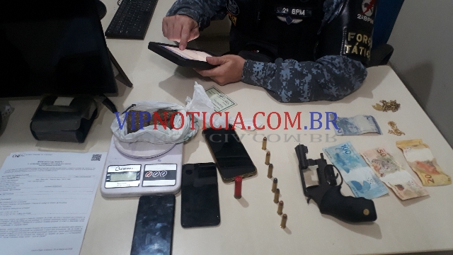 Em ato contínuo os policiais fizeram uma varredura no local e acabaram localizando 02 porções de maconha, 01 TV, 01 caixa de som, 02 correntes aparentando ser ouro, dinheiro, arma e munições. Ao serem indagados sobre os objetos localizados os elementos identificados como Eduardo, Adriano e Robert não responderam.