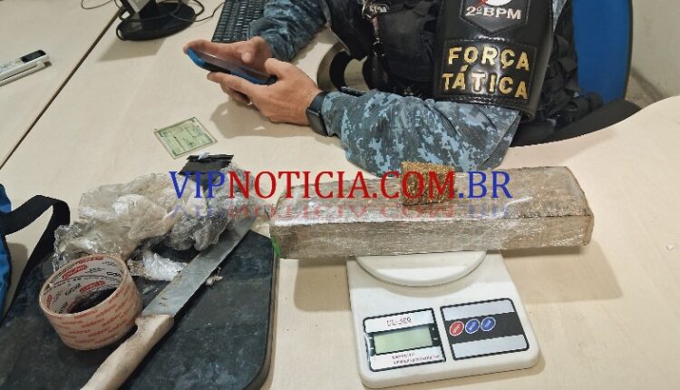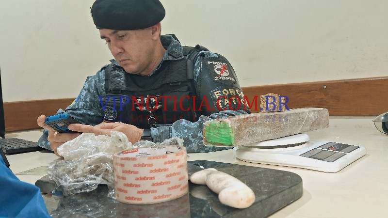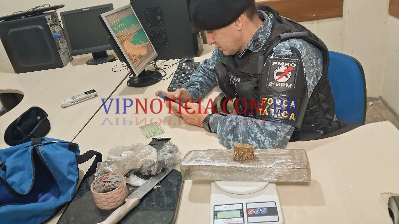 Rapidamente a guarnição se aproximou e realizou a abordagem ao elemento identificado como Helvis Lopes, durante os procedimentos policiais foi localizado na mochila dele um quilo de maconha embalada com papel filme e uma balança de precisão. Na área da residência havia uma faca com vestígios de maconha e pedaço de maconha de aproximadamente (22 gramas).