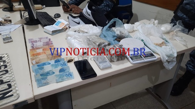 Em revista pessoal, na mochila os policiais encontraram um cerca de 300g de maconha, na residência os PMs localizaram mais drogas sendo cocaína, crack e maconha além de dinheiro uma faca um par de tênis e a placa de um veículo de Porto Velho. O rapaz identificado como Bruno, recebeu voz de prisão sendo conduzido para UNISP, ficando à disposição da justiça.