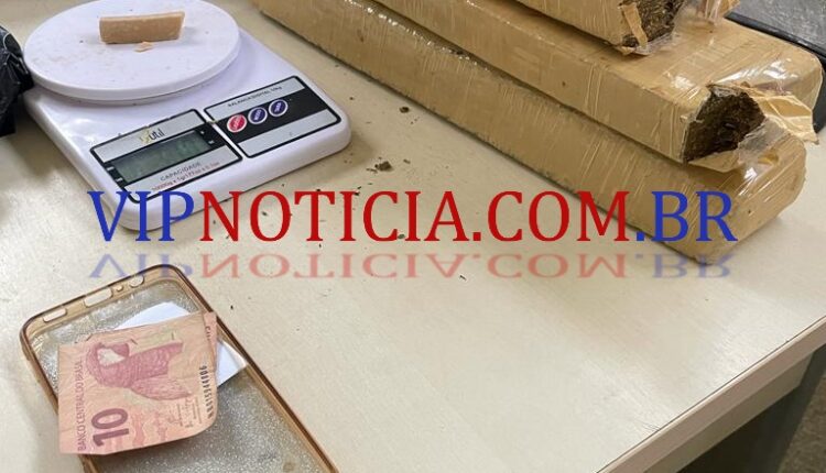 Diante da situação de flagrante, foi realizado incursão e abordagem ao casal que confirmou a existência de mais uma quantidade drogas nos fundos da casa, onde foram encontrados dois tabletes, que somaram 2,3 Kg, além de uma balança de precisão.