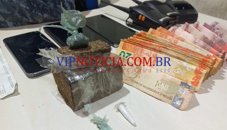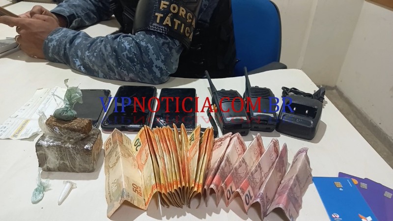 Dano continuidade ao trabalho a polícia abordou três homens e uma mulher. Em uma busca na residência, foram localizado aproximadamente 140g de maconha, dinheiro e uma roçadeira de procedência duvidosa.