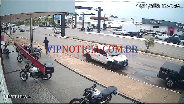 O motorista de uma pick-up Fiat Strada avança o sinal vermelho no cruzamento da Br 364 com Avenida Aracaju e atinge violentamente uma motocicleta Honda Biz conduzido por um homem ainda não identificado.