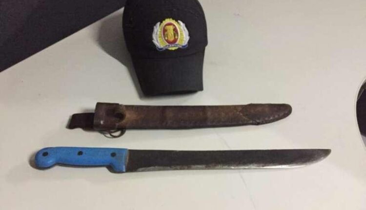 Contudo, ao avistar os policiais o suspeito começou a proferir palavras de baixo calão contra os militares que por aproximadamente 15 minutos tentaram argumentar com o homem para que soltasse o facão.