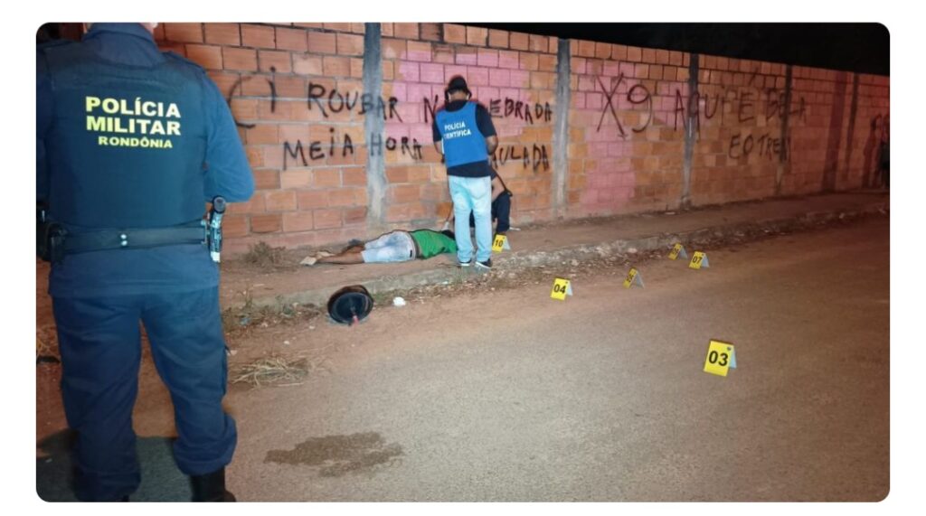 A Polícia Militar e a Polícia Técnica estiveram no local e encontraram 10 cápsulas deflagradas de calibre 380. Com os pertences da vítima, os policiais localizaram várias pedras de crack, papelotes de maconha e uma quantia em dinheiro. Além disso, no local do crime, foram constatadas várias pichações no muro com as frases: “Roubar na quebrada meia hora de paulada” e “x9 aqui é o trem bala”, indicando a presença e dominação da facção criminosa Comando Vermelho na área. Essas mensagens sugerem que o grupo atua também como um