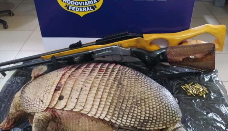 No total, foram localizadas duas espingardas (ambas calibre. 22), 36 munições do mesmo calibre e uma espécime silvestre morta (tatu). Os dois envolvidos e os objetos apreendidos foram encaminhados à Polícia Civil para destinação.