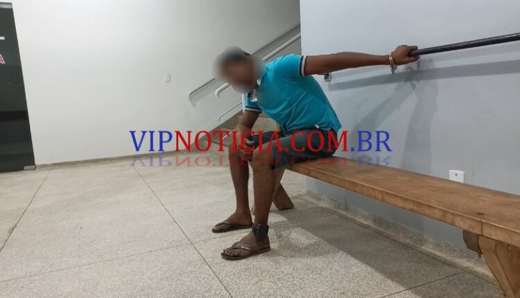 Durante o patrulhamento nas proximidades, a guarnição localizou o suspeito em uma lanchonete. Após uma revista pessoal, foi encontrada uma faca com cabo de madeira na cintura do homem. Ele afirmou que a arma era para sua própria proteção.