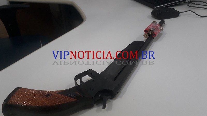 Na revista minuciosa foi encontrado uma arma de fogo, tipo garrucha, calibre .36, municiada e mais três cartuchos intactos.