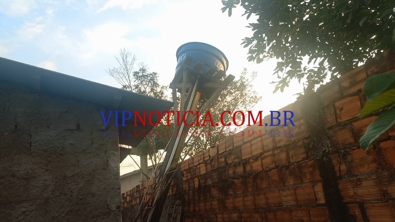 Um homem sofreu ferimentos graves após cair de uma altura de cerca de 5 metros enquanto realizava manutenção em uma caixa d’água na tarde desta segunda-feira (25) na rua do Sol, bairro União 2.