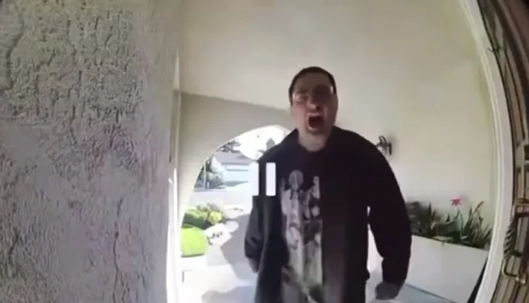 Imagens registradas por uma câmera de segurança mostram Jason Nichols batendo de forma agressiva na porta, quebrando a campainha e gritando.
