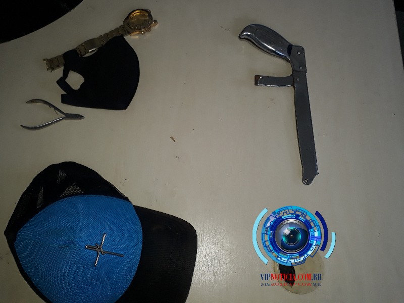 Um velho conhecido do meio policial, foi realizar um roubo em uma loja na Av Brasil na cidade de Ji Paraná, e se deu mal. O elemento pediu para ver alguns modelos de relógio, a proprietária da loja colocou uns três, quatros modelos em cima do balcão, e foi na hora que o indivíduo anunciou o roubo, ele foi tentar sacar um simulacro modelo de serra de cortar, o esposo da vítima, percebeu que sua esposa estava sendo assaltada . entrou em luta corporal com o elemento e imobilizou o assaltante, Jogou o mesmo ao solo, e pediu socorro, a população de pronto ajudou a conter o meliante que acionou a Polícia Militar, Que rapidamente se fez presença no local e algemo o suspeito. O indivíduo ( Elizeu ) está fazendo uso de tornozeleira, eletrônica, mas a mesma está desligada. Os policiais militares conduziu o elemento juntamente com o simulacro até unisp onde ficará a disposição da justiça.′