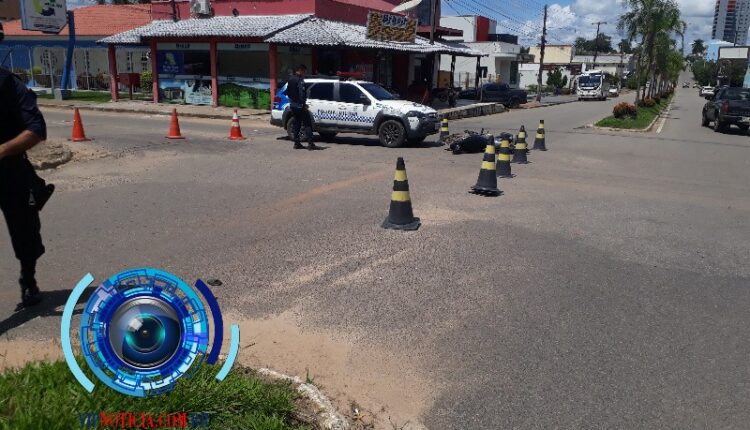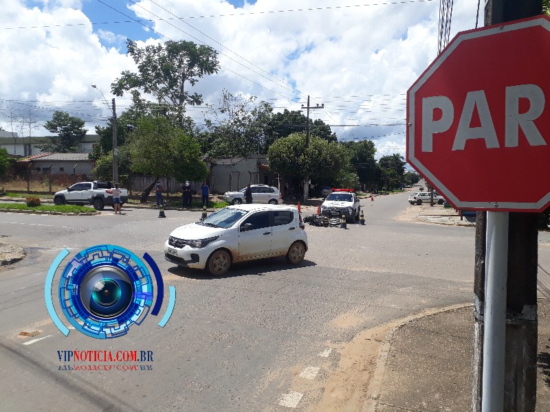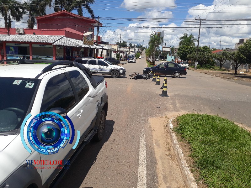A polícia militar registrou mais um acidente de trânsito no primeiro distritos da cidade de Ji Paraná segundo informações que foi colhida no local do acidente o condutor do veículo fiat strada informou ao policiais que transitava com o seu veículo pela rua 6 de maio, sentido BR, 364 quando ao passar no cruzamento da Rua Dom Augusto um motociclista colidiu na lateral esquerda. Do seu veículo Vindo cair ao chão provocando várias lesões leves pelo corpo. O corpo de bombeiros foi acionado para fazer os primeiros socorros no condutor da motocicleta e levou o rapaz até o hospital Municipal. Os policiais fizeram o isolamento no local do acidente para controlar o trânsito, na localidade.